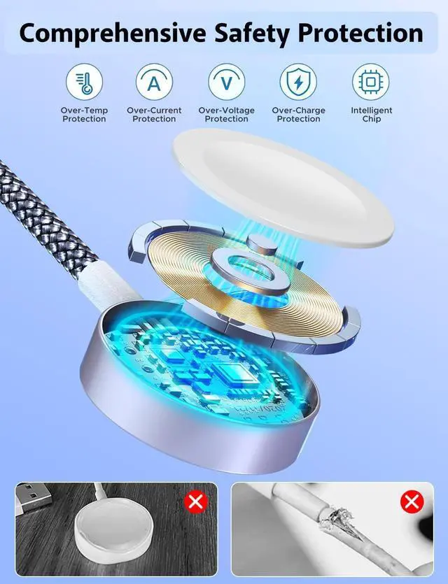 Charges iPhone from 0% to 45% within 35 minutes iWatch 50% within 45 minutes don't support data transfer?? High Quality MaterialFeatured by a sandblasted Aluminum shell and unibody plug and the body is made of revolutionary nylon braided wire enhance heat dissipation capability Lasts 30x longer than ordinary cables-proven in a laboratory environment to withstand 40000 bends resulting in a longer lifespan compared to ordinary TPE cables?? Safe and Environmentally FriendlyBuilt-in advanced chips with over-current over-voltage short-circuit and overtemperature protection to provide you with a safe charging experience. 3 in 2 Cable possesses excellent corrosion resistance allowing it to be used safely and reliably in outdoor environments?? What You Will GetWe provide this 3-in-2 USB C/A to iWatch/L/USB C Cable with 24-Month worry-free period and 24/7 customer service if you have any questions we will resolve your issue within 24 hours