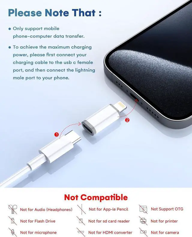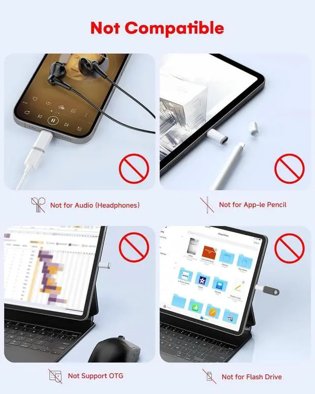 Attention Please: This usb c to iphone adapter is NOT Compatible with OTG