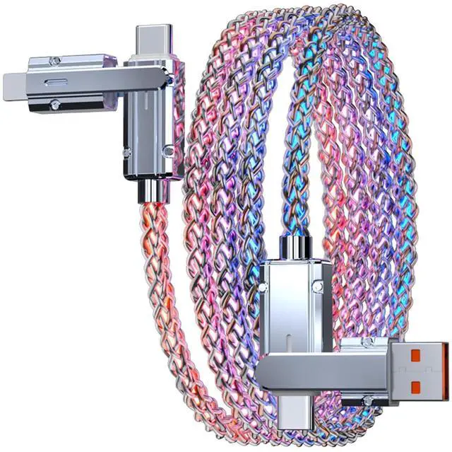 And the cable is braided with strong fiber and provide fast charging and safety to users. All multiple led charging cable has been passed 60000+ times bending tests in factory.? Widely CompatibleRGB Colorful Gradual Multi Led charging cable works with Most Type-C/USB A/Lighting devices. Lighting Compatible with Phone 15/14/13/12/11 Pro Max Type-C Compatible with Galaxy S24/S23/S22/S10+/S10S9/S9+/S8/S7 HTC OnePlus Moto and so on.? What you will receiveYou will receive 1x 66W 4 in 1 RGB Flowing LED fast charging cable and excellent customer service if you have any qustions about our light up charging cable feel free to contact us we will give you satisfactory solution within 12 hours.