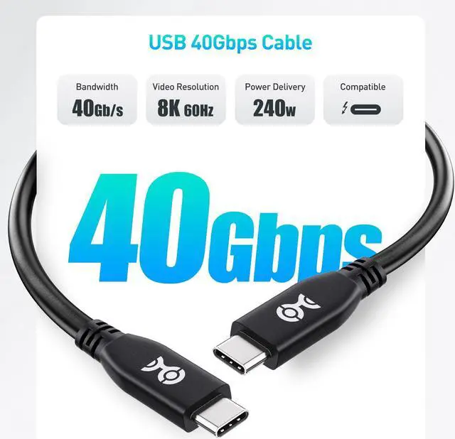 Cable: The Cable Matters USB4 to USB4 cable (USB Type C Cable) supports the USB4 standard offering up to 40Gbps bandwidth 8K video support and 240W charging. This 40Gbps USB C cable also supports USB PD 3.1 Extended Power Range (EPR) for 28V/140W 36V/180W and 48V/240W power delivery.