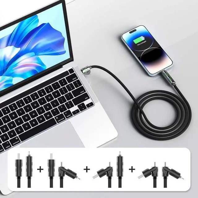 This Chubby USB-C Cable features four connectorsUSB-C to USB-C USB-C to lightning cable USB-A to USB-C and USB-A to lightning cabledelivering a complete solution for C to C fast charging and data transfer including for iPhone 16/15/14 for Galaxy smartphones for iPad/MacBook tablets and more. Best of all you don't need to update your Wall ChargerExperience ultra-fast usb to c cable with the USB C to