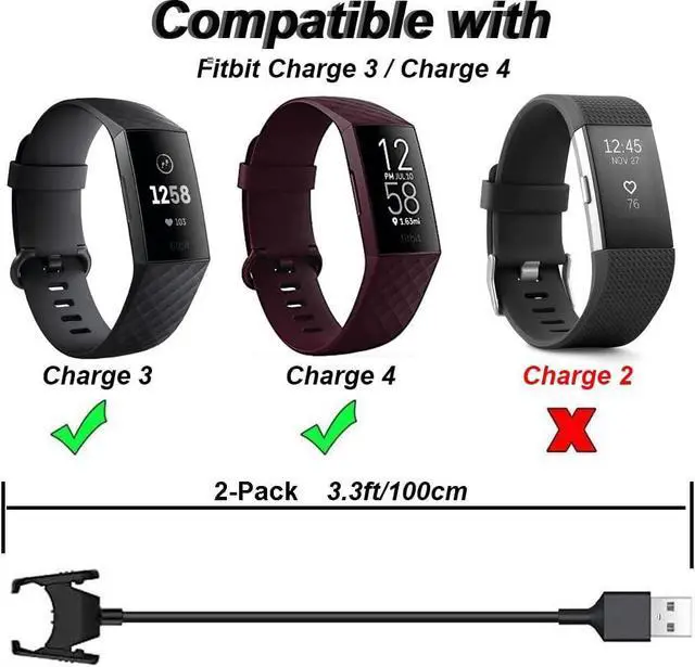 CompatibilityThis Replacement charger compatible with Fitbit Charge 3/Charge 4 activity tracker.