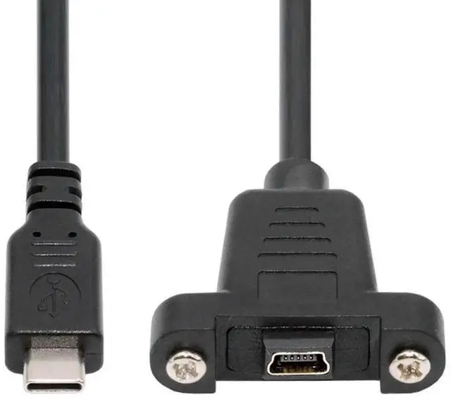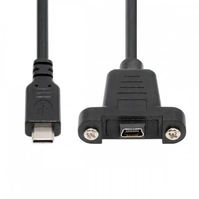 USB 2.0 Mini 5Pin Female to Type-C USB-C Male Power Cable 480Mbps Data with Panel Mount Holes 30cm