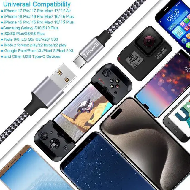 Compatibility List: 3 Pack 6ft USB C Cable 18-month Warranty. This Type C Cable can fast charge and sync well compatible with iPhone 17/17 Pro Max/17 Pro/17 Air/iPhone 16/16e/16 Pro/16 Plus/16 Pro Max/iPhone 15/ 15 Pro/ 15 Plus/15 Pro Max/iPad Mini/Pro/Air Galaxy S20/S20+ Ultra S10 S10E S9 S8 Note 10 9 8 Moto Z/Z2 LG G5/G6/V20/V30 and other USB-C devices.