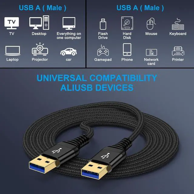 DATA TRANSFER SPEED: The USB 3.0 male to male cord data transfer up to 5Gbps 10 times faster than USB 2.0 cables which can transfer your large files just in seconds no more waiting. The USB A to USB A Cord also allow connection of USB 3.0 devices to legacy USB 2.0 computer. Backwards compatible with computer USB 2.0 and USB 1.1 ports. (