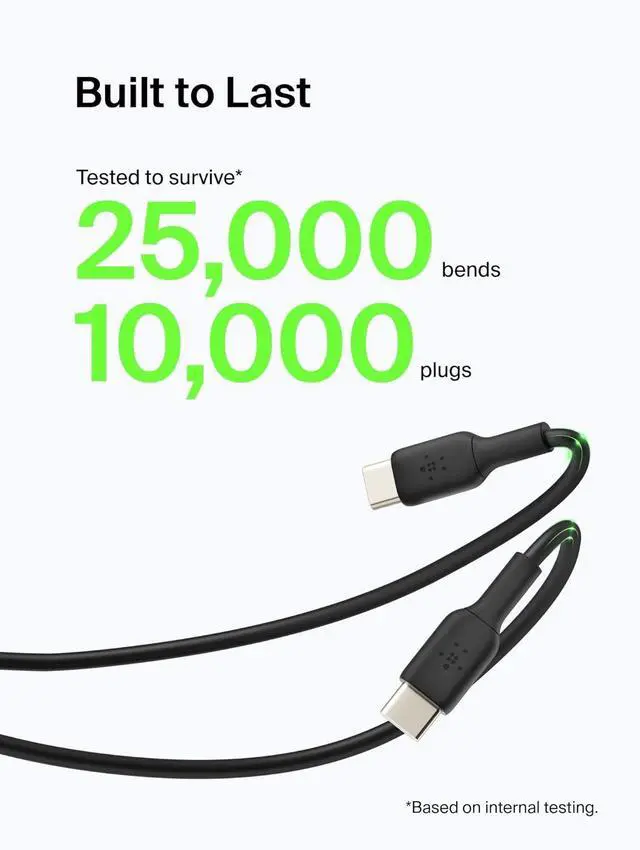 SUPERIOR DURABILITY: The Belkin BoostCharge Cable has been tested to survive up to 25 000 bends and 10 000 plug-ins making it more durable than a typical USB-C cable.