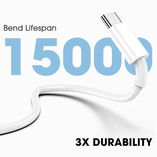 [Durable USB C Charging Cable 15000+ Bend Lifespan] Crafted from high-quality TPE material this cable feels just like the original charging cord smooth flexible and soft to the touch. It resists tangling and is built to withstand over 15 000 bends for long-lasting performance without cracking or fraying. [3-Pack 6FT Type-C Cable Convenient Length] Includes three 6FT ( 1.8 m) cables perfect for use in different places like home office car or travel. Enjoy freedom of movement while charging no more being stuck next to the outlet. [Safe & Reliable USB-C Cable for Devices] Built-in smart chip ensures safe charging by protecting against over-voltage overheating and short-circuit.