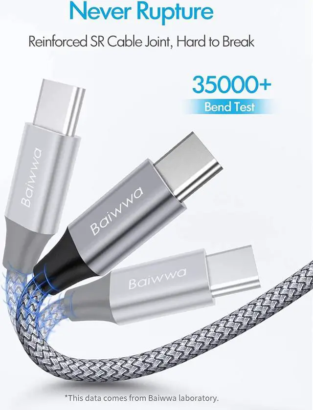 Data Sync: Baiwwa Type C Charger Cable Fast Charge delivers a High-Speed Charge up to 3 A and Data Transfer up to 480 MbpsEnhanced More 15X