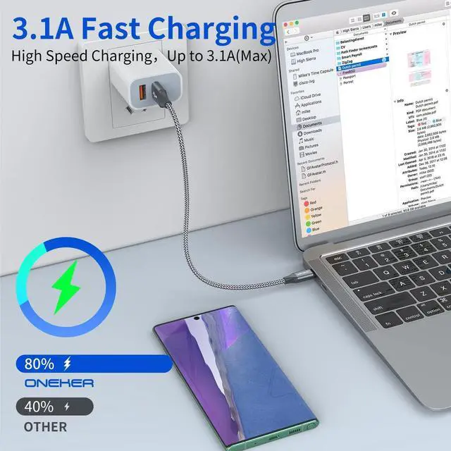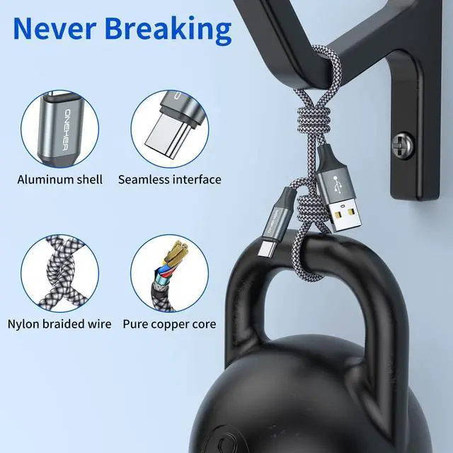Perfect: Encased with Triple-Braided Nylon fiber which make it have excellent anti-twisting & Abrasion-proof property. This USB Type C Cable can withstand at least 10 000 cycles of 90 degree bend test. Ideal for your heavy daily useWhat