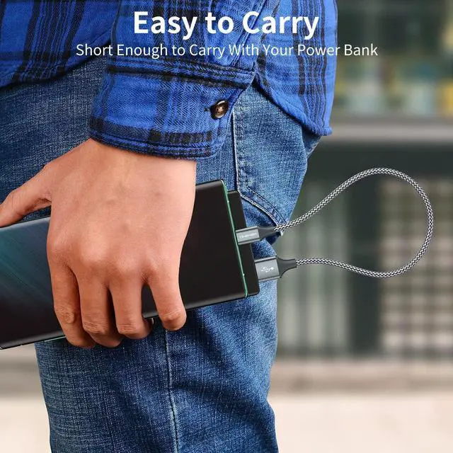 1-Feet Short USB C Cable 1ft USB Type C Charger Cable Easy for charging your phone with a power bank. beat the tangle and always keep the clutter down. Ideal for Travel useUSB