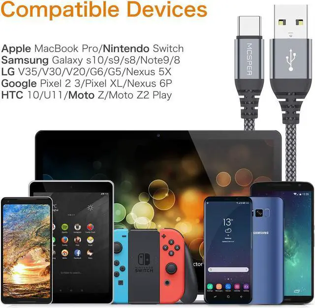 COMPATIBILITY: Charge and Sync well with All USB Type-C devices such as Galaxy S9 S9 Plus S8 S8+ Note 9 8 Google Pixel 2 XL LG V35 V30 V20 G7 G6 G5 New Macbook Nexus 5X 6P Chromebook Pixel moto Z Z2 play Z3 P9 P9 Plus Mate 10 Mate 9 Lumia 950 950 XL OnePlus 2 3 3T 5 6 HTC 10 11 12 and moreFAST