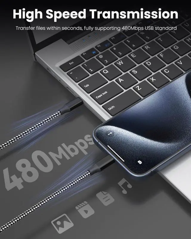 Fast Charging & Data Transfer: Supports up to 3A fast charging and data transfer speeds of 480Mb/s. Achieve up to 60W charging when paired with a 60W USB C charger (60W = 20V * 3A)Durable