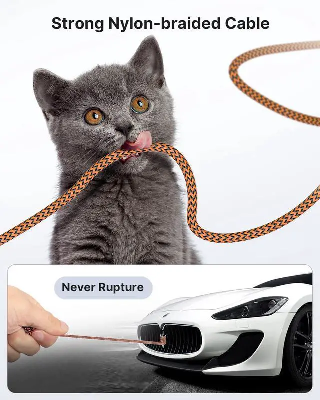 Charging Cords: Built with reinforced stress points and flexible nylon braiding this USB cable resists breaking fraying and tangling. It easily bends to fit tight spaces and harsh angles without damage offering both toughness and everyday convenience.