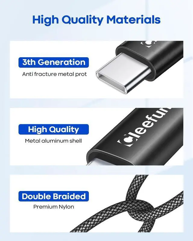 Compatibility: CLEEFUN USB Type C Cable is compatible with iPhone Air/17 /17 Pro/17 Pro Max 16/15 series. The USB C charger cable for Galaxy S25 Ultra / S25 / S25+/ S24 Ultra / S24 / S24+/ S23/ S22 / S21 / Z Fold/ Z Flip Pixel 9 8 7 6 Moto G/ Edge/ Razr and other USB C devicesWhat