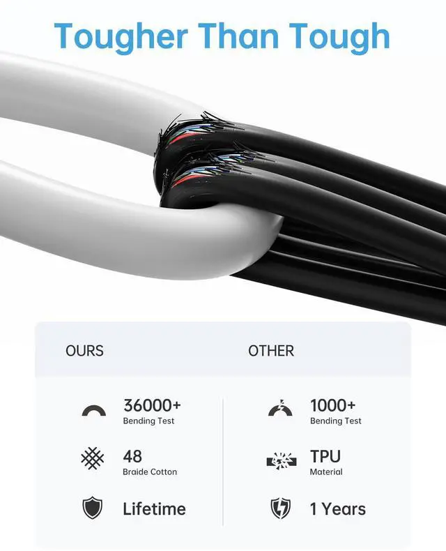Such as Galaxy S23/S22/S21+/S21/S20/ S20+/ S20 Ultra/ Note 10 MacBook Air/Pro 13'' iPad Mini 6 iPad Pro 2021/2020/2018 iPad Air 2020 and more. Safe & ReliableThis usb c to usb c cable built-in E-marker smart chip that automatically adjusts power to prevent overheating and overcharging. The improved automatic temperature control technology significantly reduce the temperature during charging effectively extend the life of the battery and the device. 40X Durable USB C Charger CableThis usb c to usb c cable use High-Quality Tangle-free Braided Nylon wire each cable has been tested with 30000+ times bend lifespan and 25000+ plug and unplug lasts 40x longer than ordinary cables.