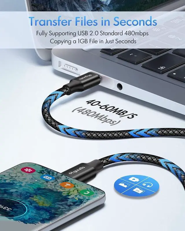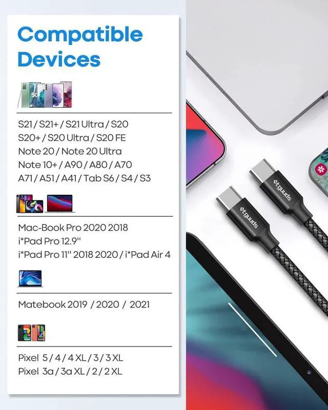 MbpsLong-Lasting: Type c to type c fast charging cable wear-resistant nylon outer layer and ballistic fibers core increase its life time the nylon braided cable bends freely and can withstand 20000+ bendsUniversal