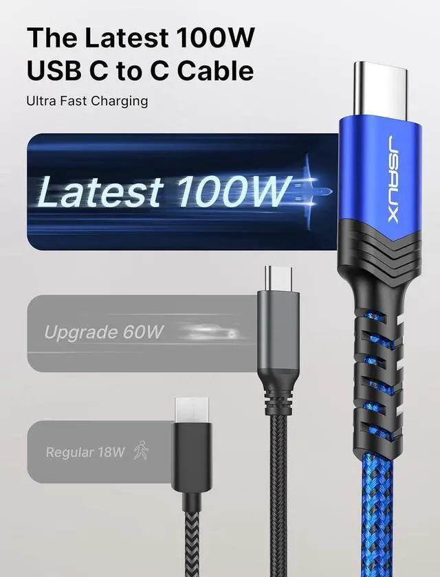 NOTE: The actual charging speed depends on your device and wall charger. To achieve maximum 100W charging speed you need a USB Type C charger that supports 100W outputBUILT IN E-MARK CHIP FOR SMART CHARGING: This USB C to USB C cable comes with an advanced E-MARK chip. This intelligent chip discerns your device and its charging capacity adjusting voltage and current accordingly to offer speedy charging without overloadingHIGH