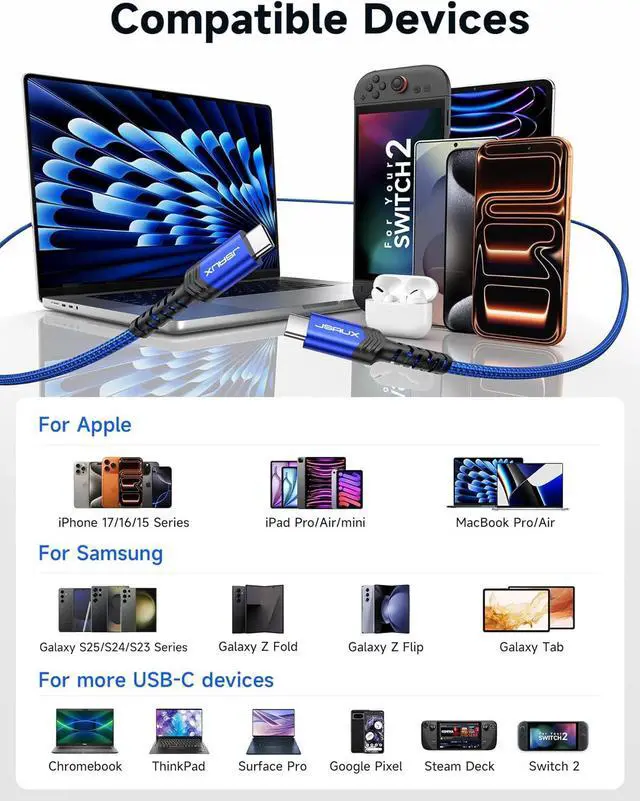 LIST: Compatible with iPhone 16 iPhone 16 Pro iPhone 16 Plus iPhone 16 Pro Max iPhone 15 iPhone 15 Pro iPhone 15 Plus iPhone 15 Pro Max Galaxy S25 S24 Ultra S23 S22 S21 S20 Plus Ultra Note 20 10 and 20 10 Plus Google Pixel 7 6 5 2 3 4 XL iPad Pro 2022/2021/2020/2018 iPad Air Steam Deck and more upcoming devices with USB C port