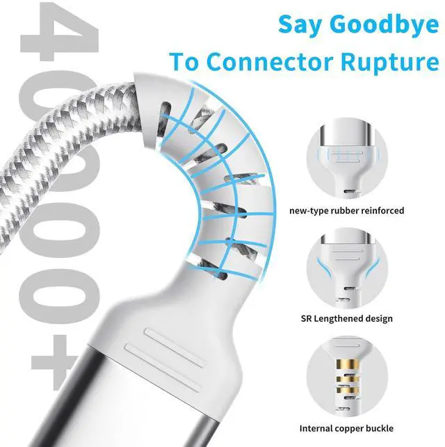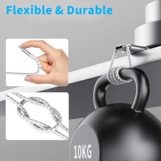 Stronger Durability: Crafted with strong fiber our cable is not only flexible and powerful but also incredibly durable. It can withstand over 10 000 bends and features a premium aluminum housing for added longevity. The nylon braiding further enhances the cables durability and prevents tangling.