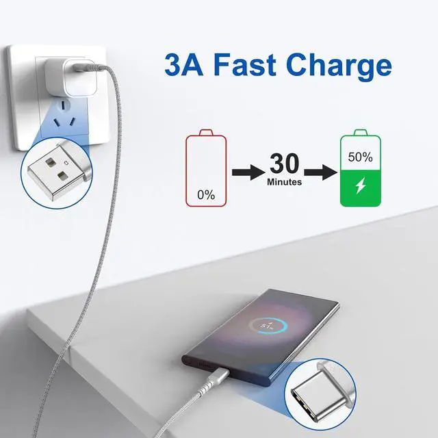 Fast Charging: Experience rapid charging and data transfer speeds up to 40~60MB/s (480Mbps) with our USB C Cable. This cable provides 5V/ 3.1A safe charging power significantly quicker than standard 5V/ 2.4A cables.