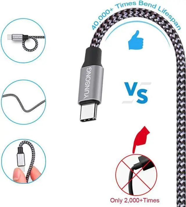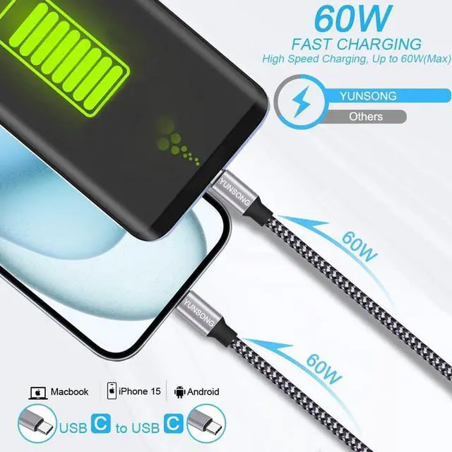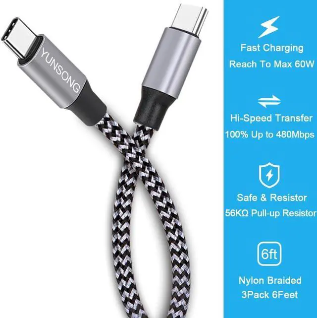 Our Cable Protect the Charging Port of Your Expensive Device from Damage Metal end Never Broken; Premium Copper wire core Provide You Greater Charging Stability and Higher Efficiency Protect Against Overheating Overcharging Short Circuiting; Tested with Over 40000+ Times Bend to Provide 4 Times Longer Lifespan Adding Surprisingly Flexibility. Fast Charge Most USB-C Laptop Tablet Cellphone to 50% in Only 30 Mins Great for Galaxy and Google Pixel PPS Super fast Charging; Max Support 60W 20V 3A Through Support 480Mbps High Speed Data Sync. With our 3-pack of USB C to USB C charging cables you'll have enough cables to keep one at home one in the office and one in your car ensuring you always have a fast charging solution within reach.