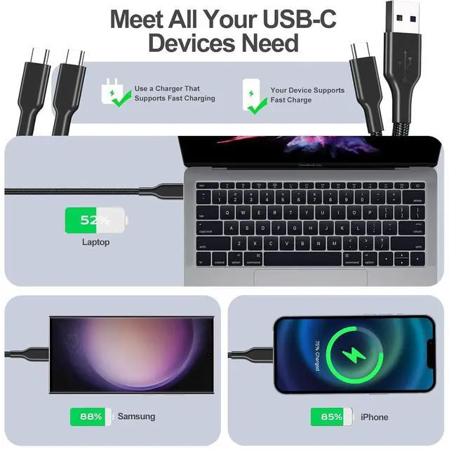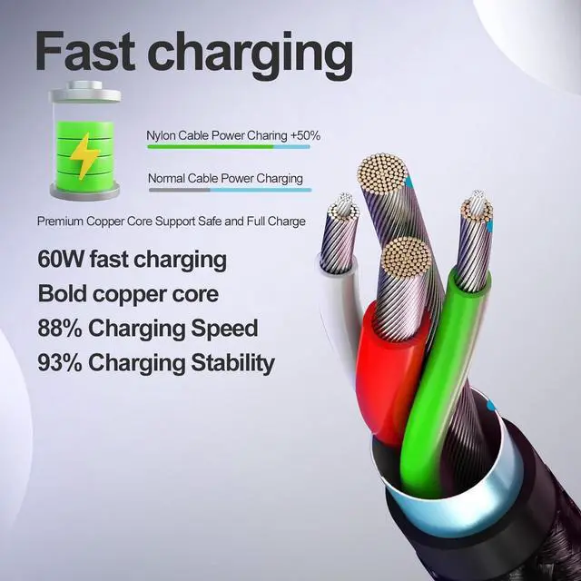 Perfect Compatibility: It is for all mobile phone iPhone iPad AirPods MacBook notebook Tablet computer &More. High-quality materials 60W Fast charging&Protective battery built-in intelligence chip keep faster and take care of your phone. Fearless bending 10000+ bend lifespan. High speed transmission speed up to 480Mbps. The Fast Charging Cable is lightweight and easily portable perfect for charging your devices on the go in your backpack purse or laptop bag providing convenience wherever you are.
