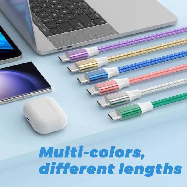 Type C Charger: As a reliable charging partner the set provides a total of 6 colors for you to choose including green (10FT) blue (6FT) purple (6FT) pink (3FT) gold (3FT) white (3FT). In addition we also consider the needs of customers in different scenarios and equipped with different sizes of cables such as going out more suitable for a shorter size of the data cable; At home it is suitable for 6FT length of data cable; When charging in the car taking into account the passengers in the back seat it is more suitable for 10FT cableAfter-sales: We provide 180 days of worry-free return and exchange service and respond to customer questions within 24 hours. If you have any questions please feel free to contact us