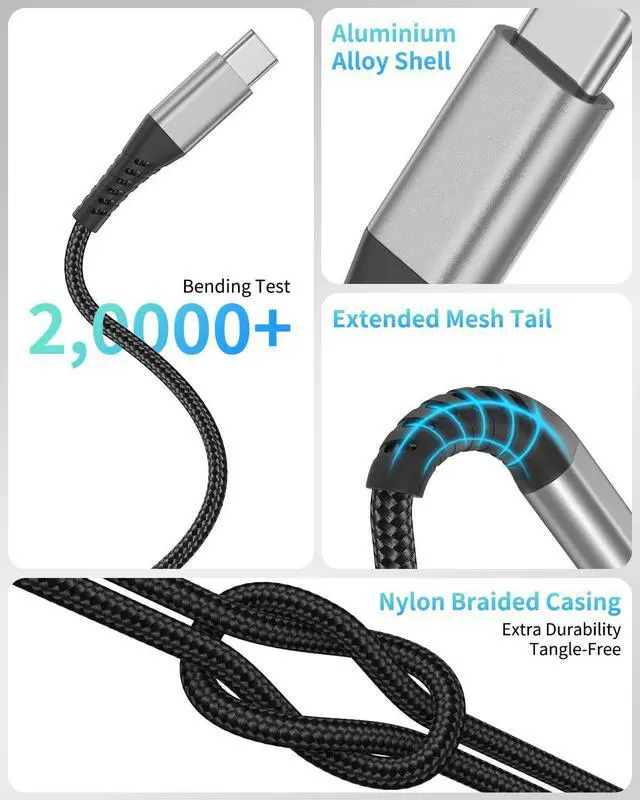 Flexible & Durable: Built with premium nylon braided material and reinforced aluminum housing this USB-C to USB-C Cable is designed to withstand over 10 000 bends making it more durable and resistant to wear and tear than standard cables.
