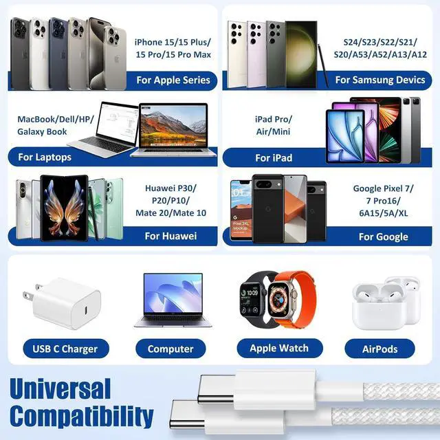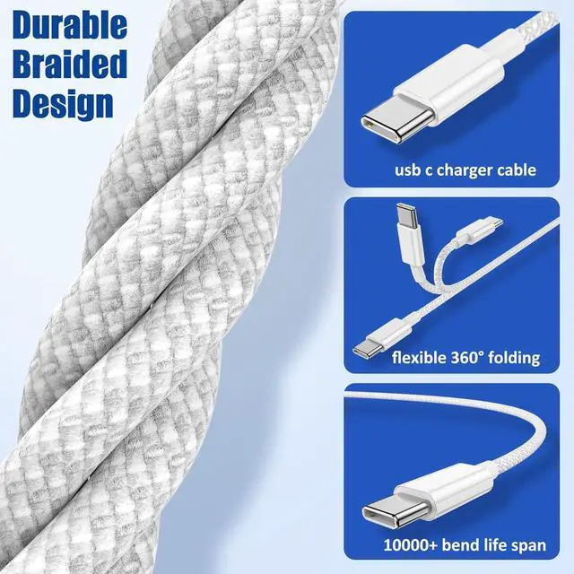 The braided nylon material helps to prevent tangling and damage from bending and twisting providing better protection and flexibility than other materials while being stronger and more durable than other cable brandsPerfect 4Pack 3ft+6ft+6ft+10ftThere is a choice of four-part cables in three sizes so you have the flexibility you need for charging. Perfect for everyday life and office work you can enjoy your iPhone/iPad while it charges super fast. This USB-C to USB-C cable is available in a range of lengths from 3ft to 10ft so you can keep a spare cable at home or in the officeWide CompatibilityOur type c charging cable is perfectly compatible with most USB C devices including mobile phones tablets and laptops such as iPhone 17 16 16 Plus 16 Pro 16 Pro Max iPhone 15 15Pro 15Plus 15Pro Max iPad Mini 6 iPad Pro 2021/2020/2018 iPad Air 2020 MacBook Air/Pro 13'' Galaxy S23/S22/S21/S20/S10/S10E Note 20 Ultra/20+/S10/S10e/S10+/S9/S9+Plus/S8/ S8+ and moreWhat You GetYou will get four iPhone 17 16/15 charging cords: 3FT/1M 6FT/ 1.8M 6FT/ 1.8M 10FT/3M. If you have any questions please leave a message. We will respond to your questions within 24 hours and provide you with a satisfactory solution