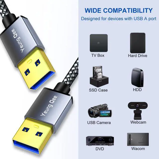 Compatibility: USB A to A cable can be used to connect a USB peripheral of USB 3.0 type A port to a computer for fast file transfer. It compatibles with all USB-A devices such as Laptop Laptop Cooling Pad Smart TV USB in car DVD player USB 3.0 hub Monitor Camera Blue-ray Drive Set Top Box etc.