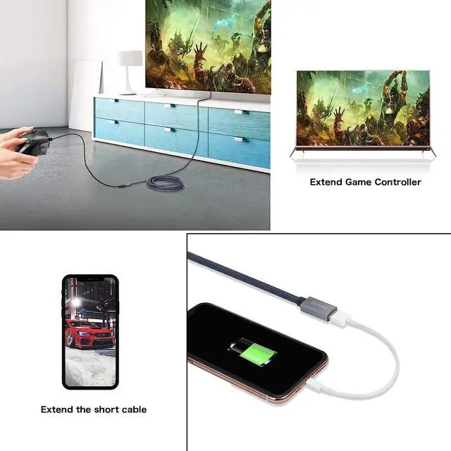 Durable Nylon Braided: Tangle-free nylon braided material and wear-resistant Aluminum alloy shell make this Type A male to Female cable bend over 10000 bending the combination of Gilded-plated connectors and foil shielding provides stable and fast data transferring. PERFECT LENGTH you can the game freely or lie on the sofa to use your devices for video while you are charging. What's more you can also extend your surveillance camera (please make sure the camera interface is USB A port). Constructed with corrosion-resistant gold-plated connectors for optimal signal clarity and shielding to minimize interference