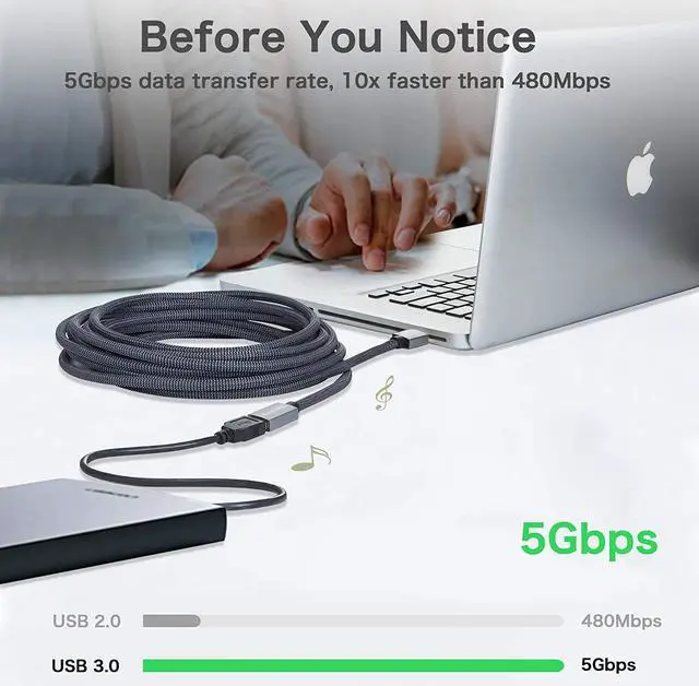 5Gbps Data Transfer: This USB extender cord supports high speed USB 3.0 data transfer rate up to 5Gbps - 10X faster than USB 2.0 (480 Mbps) which allows you to transfer HD movies or files in just seconds when your host is equipped with USB 3.0 port. Alsobackward compatible with USB 2.0 1.1 and 1.0 (speed limited by USB bus). Plug& Play on universal system no driver required.