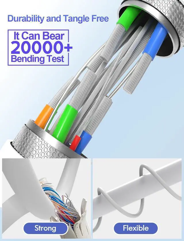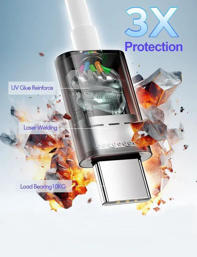 Excellent Durability: The stress relief design at both ends of the cable provides excellent protection for cable swinging and pulling in daily use. 20000 sway tests and 12000 plug and drop tests far exceed the testing standards of the USB Cable Association.