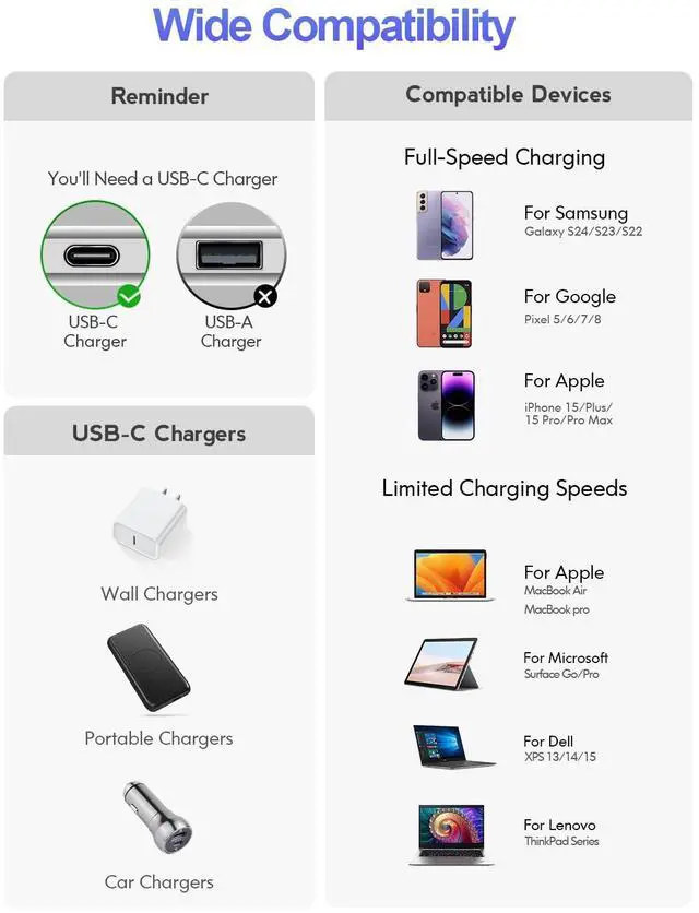 Universal Compatibility: Compatible with almost all USB-C devices including phones tablets and laptops. for iPhone Air/17/17 Pro/17 Pro Max iPhone 16/16e/16 Pro/16 Pro Max/16 Plus iPhone 15/15 Pro/15 Pro Max/15 Plus iPad 11th/10th Generation iPad Pro 11/13 inch iPad Air 11/13 inch iPad Mini 7/6 MacBook Air 13/15 inch Galaxy S25/S25+/S25 Ultra/S24/S24+/S24 Ultra/A56 and more.