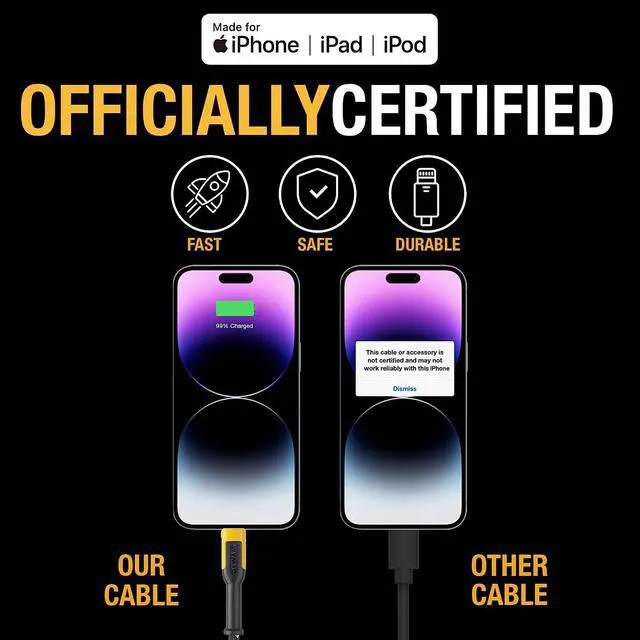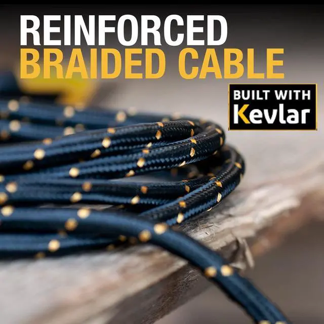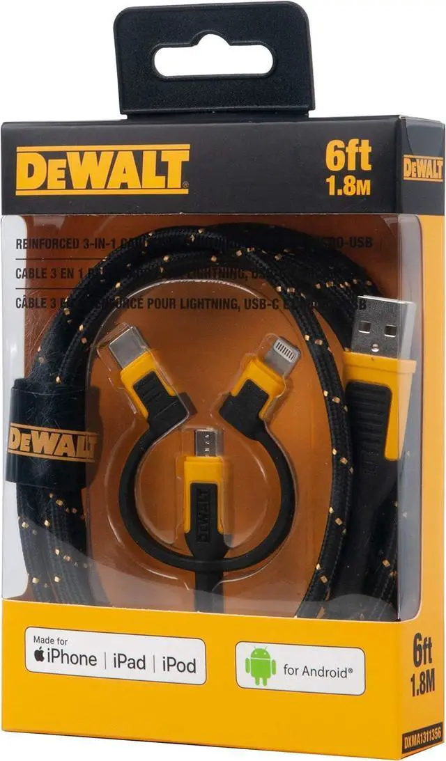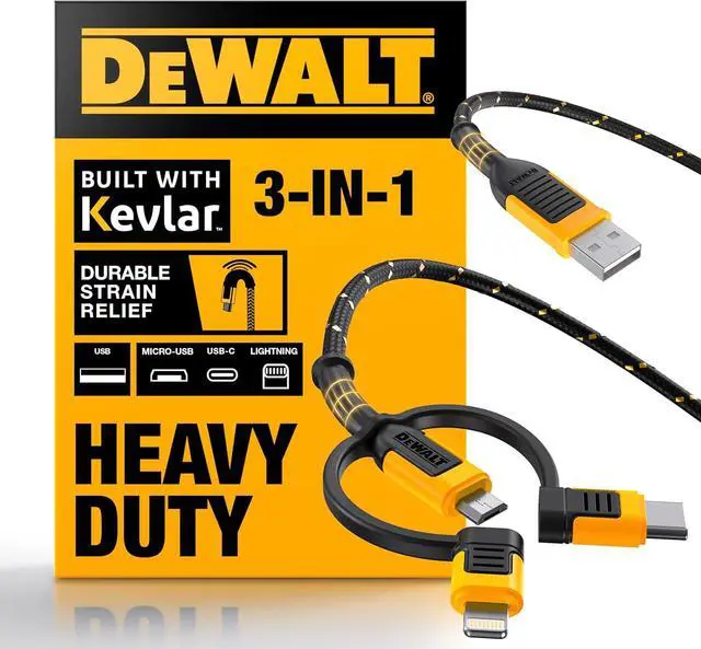 One Cable For All Your Devices Lightning Type C and Micro-USB connectors make this the only charging cord you'll need a universal charging cable for all of your devicesFeel The Resilience of This Ultra-Durable Combo Charging Cable Longevity and durability ensured with this 3 in 1 charging cable reinforced with Kevlar fiberKeep Organized With Durable Fixed Tethers This three in one charging cable features tethered connectors that are well reinforced for longevity against repeated wear and tear on the jobsiteWithstands The Harsh Jobsite Environment The rugged exterior of this multi charging cable is designed for ultimate durability to last all-day every day on the jobsiteConfidently Charge With This Certified For and Android Cable This multi usb cable connects to all iOS Android and USB PD devices