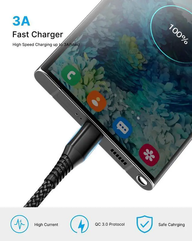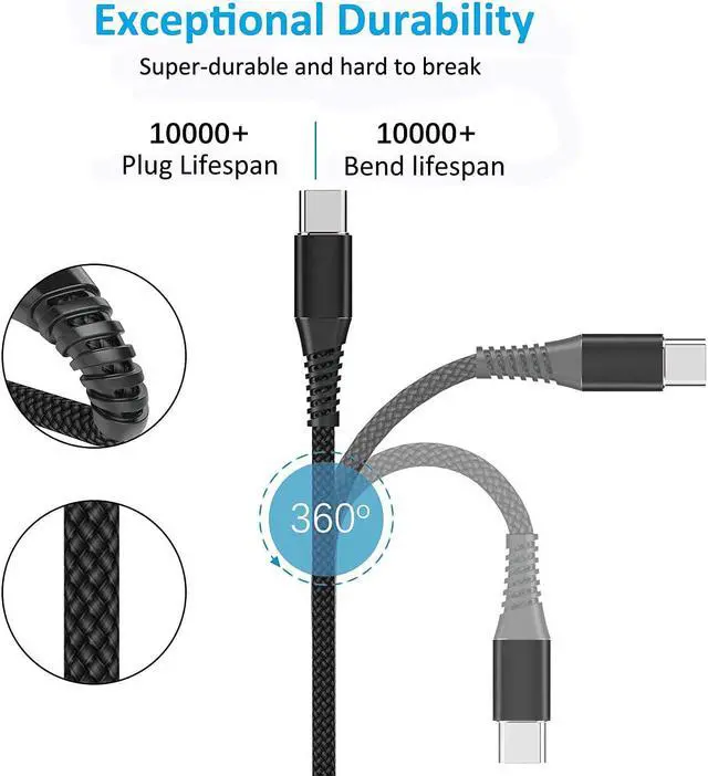 Cable Charger: The reinforced SR design using TPE material can withstand 10 000+ bending tests which effectively protects this c charger cord from breaking. Premium nylon braided usb type c cable adds additional durability and tangle free. Not afraid of being bitten by pets.