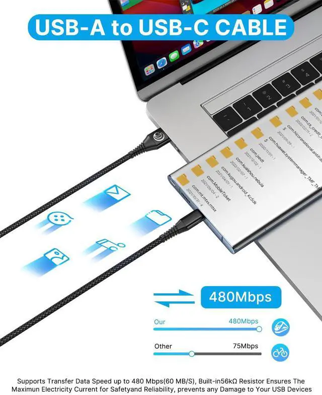 Fast Charge & Sync: Type C Charger Cord Supports Safe Fast Charging (3A) and High Speed Data Transfer (480Mbps). Conform to the USB Type C Specification version. Both sides can be inserted without worrying about the orientation of the port.