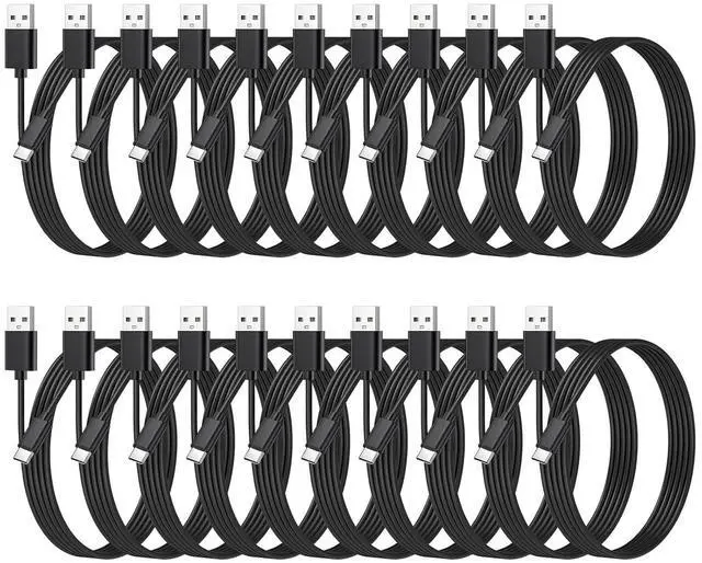 Compatible with iPhone 17 air 17 pro max 16e 15 plus and Android USB C interface phones tablets headphones cameras and other Type-C devices20 packs USB to Type-C cables black made up of pvc steady and unbreakable; 3.3 feet / 1 meter longSupports fast charging and supports USB 2.0 480Mbps quick data transferMultipack USB C charger cables used in bulk support lots of devices charging simultaneously - saving timeWidely used for nitendo switch/ps5/xbox game controllers headphones and cellphones charging for gamecapture / obs / xsplit / tipeee-stream / twitch / mixer and facebook live content creation devices conveniently for vloggers making streaming and youtube tiktok video