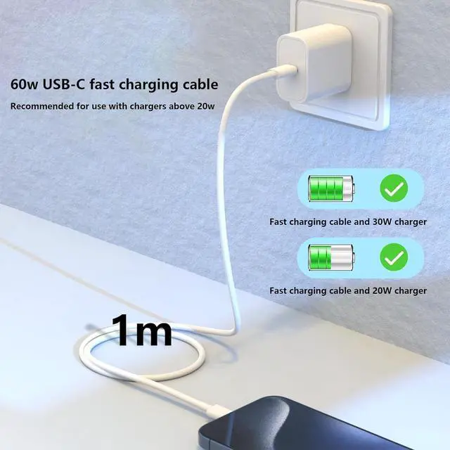 CHARGING COMPATIBILITY]: This cable supports 60W high speed charging for Type-C smartphones tablets or laptops. Suitable for iPhone 15/15 Pro/15 Plus/15 Pro Max/16/16/16 Pro/16 Plus/16 Pro Max MacBook iPad usb-c 2025/2024/2021/2020/2018 for Galaxy S20/S20 Ultra/Note 10/Note 10