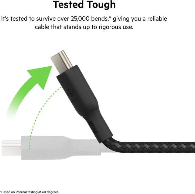 MADE TO LAST: This USB-C to USB-C cord is available in black or white and designed for lasting use with a durable anodized aluminum cable head and double-braided nylon cable design that's been tested to survive over 25 000 bends and 10 000 plug-ins.