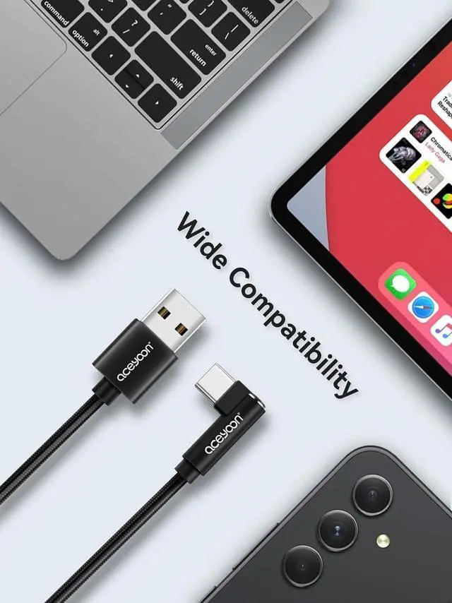 Long Service Life: The usb c cable is made of nylon woven and high -quality aluminum alloy connector. This 90 -degree type C cable is durable and scratch -resistant. The connection of your device is free of damage when inserting and pulling out the plug.