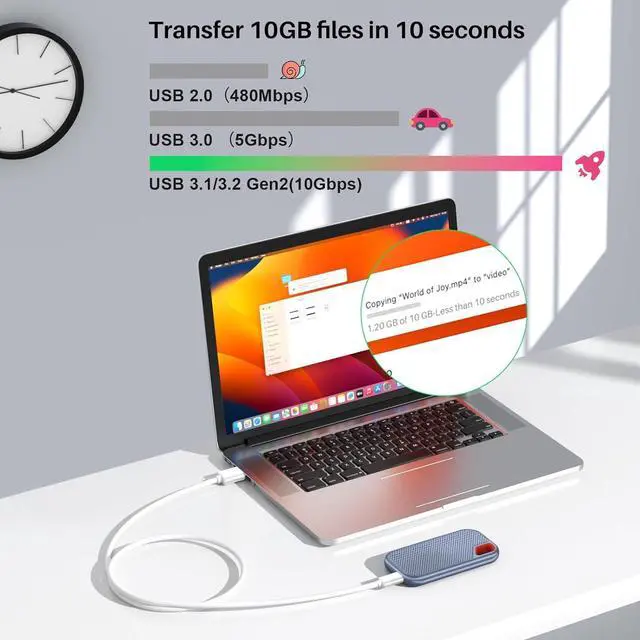Ultra-Fast Data Sync: USB 3.1 / 3.2 Gen 2 cable (10Gbps) 20 times faster than USB 2.0 cables (480Mbps) Moves your favorite movies music and novels from your phone/ssd/hard driver to your computer in seconds perfect for quick data sync or file transfer and stable connection.