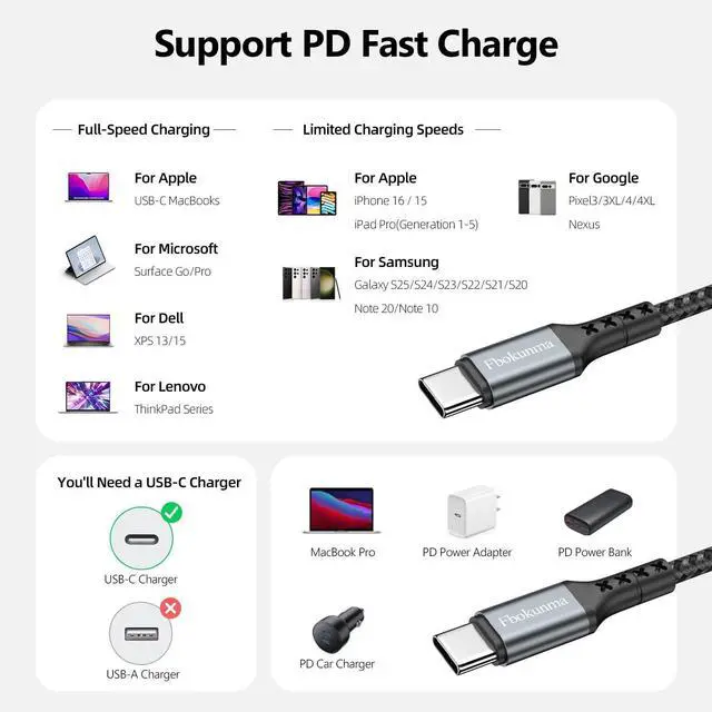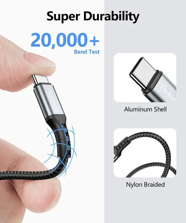 Durable & Suitable Design: Premium nylon-braided USB c to c type fast charging cable can ensure tangle free and durability It can bear over 20000 bending test; Upgraded 3D aluminum connector and Improved connector tip can fit well and hold firmlyUniversal