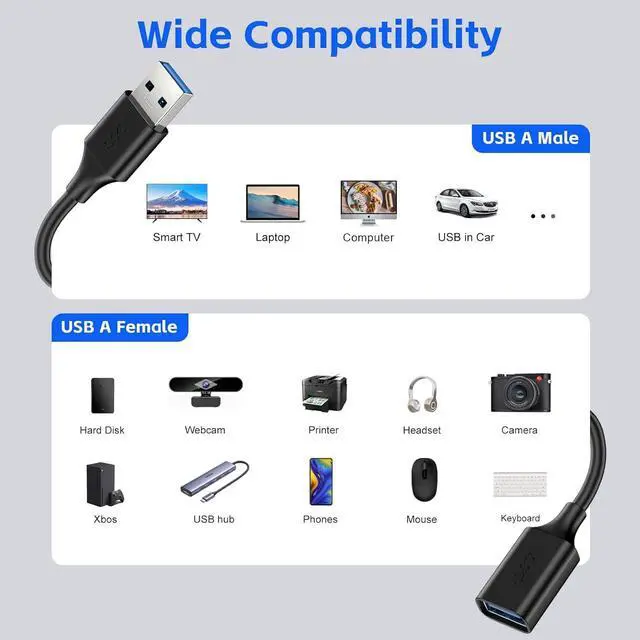 Compatibility: You can use the USB 3.0 cable to extend the distance between your device and your computer or charging outletas such as smartphone usb flash drives hard drives PS4 controllers card readers Bluetooth adapters keyboards mice webcams GamePad Playstation Xbox VR Headset hub printer camera. Easily provide data transfer and charging for your devicesDurable and