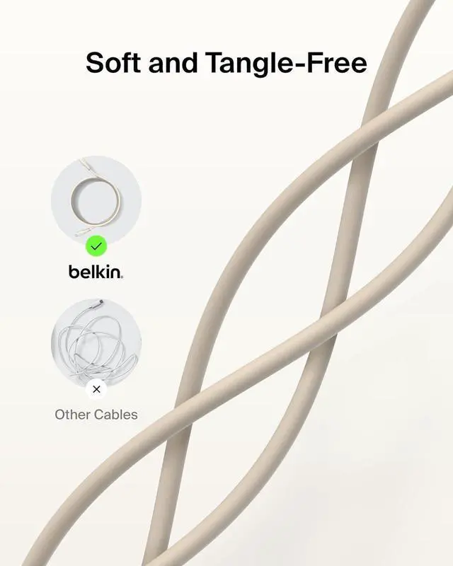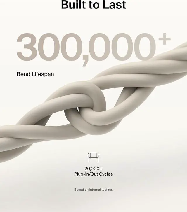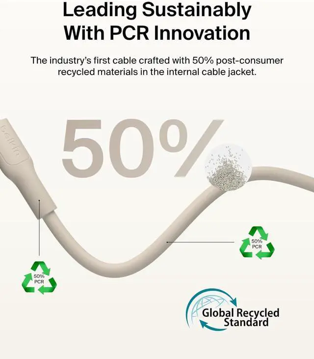 SUPERIOR DURABILITY: Our soft flexible cable is made with an extra durable 95% PCR PET braided exterior with 50% PCR PET head and internal jacket tested to survive over 30 000 bends and 10 000 plug-ins*** for up to 30x the durability of most cables.