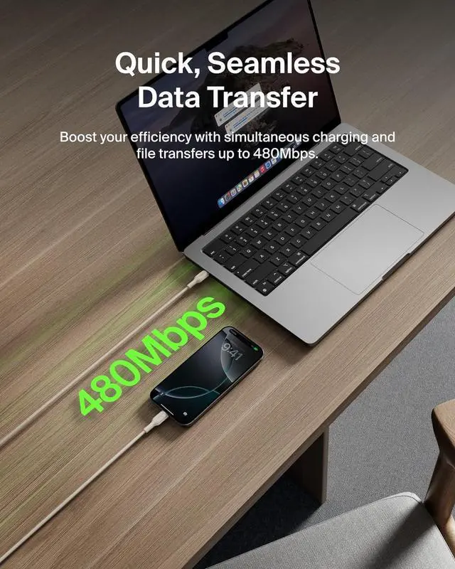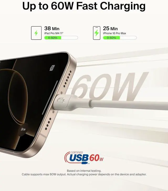 FAST CHARGING FOR YOUR DEVICES: The Belkin BoostCharge USB C Cable delivers 60W of power to fast charge your iPhone 16 from 0-50% in as little as 25 minutes* as well as charge a Galaxy S25 Google Pixel 9 and more at lightning speeds.
