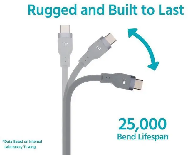 Supports USB Power Delivery up to 240W for ultra-fast charging of laptops tablets and smartphones. Ideal for travel workstations and high-power charging hubs with limited space. Flexible silicone jacket resists tangling and provides a soft-touch durable finish for everyday use. Precision-molded USB-C connectors ensure secure connections and stable charging. Rated for 25 000 bends to withstand repeated plugging unplugging and movement without failure. Available in multiple lengths and colors to suit your charging setup. USB 2.0 data transfer support for reliable syncing and connectivity with USB-C devices. Designed for broad compatibility with MacBook Chromebook Steam Deck Android phones and more.