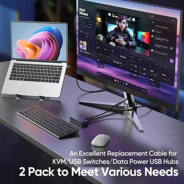 Versatile in Use: The double usb cord is compatible with most devices with type A port including laptops desktop computers gaming monitors hard disk drives DVD players KVM switches USB 3.0 hubs (This cable does not support data transfer between two laptops).