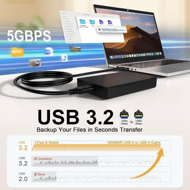 A Cable: usb a to usb a Cord is Up to 5 Gbps Super Speed for USB 3.0 data transfer 10x faster than USB 2.0 which can transfer your large files just in seconds no more waiting Backwards compatible with computer USB 2.0 and USB 1.1 ports - these cables also allow connection of USB 3.0 devices to legacy USB 2.0 computers. (