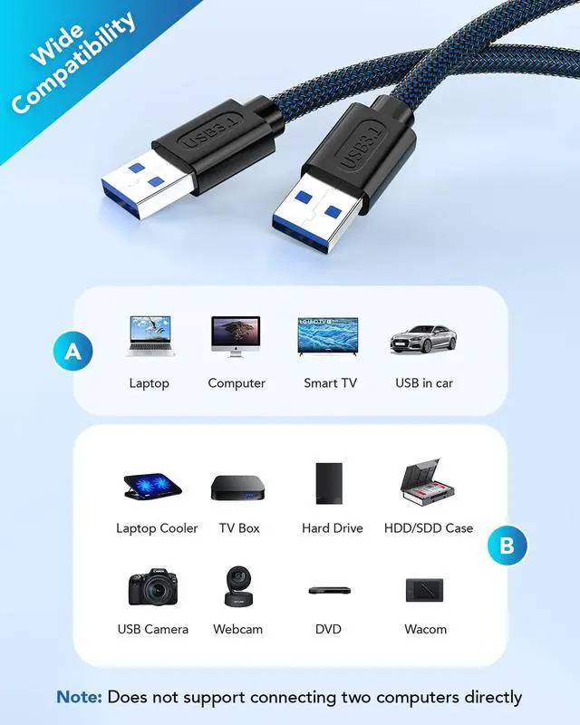 Note: Does not support connecting two computers directly.